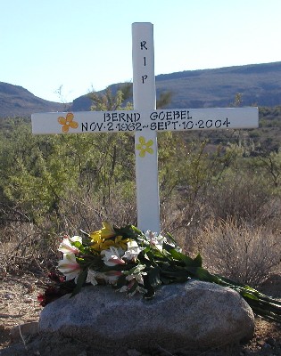 BB war letzte Nacht auf dem Weg zu mir nach hause als es passierte. Er wollte noch eine Nacht bei uns verbringen, bevor er wieder zurück nach Deutschland fliegen wollte. Um 21.00 Uhr klopften 3 Polizisten an meine Haustür und fragten mich wie meine Beziehung zu dem großen Kerl war. Sie konfrontierten mich dann mit der Nachricht, dass es in der Wüste ca. 30 Meilen nördlich von Wickenburg (ca. 75 Meilen nördlich von Phoenix) zu einem Frontalzusammenstoß zwischen zwei Autos gekommen ist. Wir sind die Straße einen Tag vorher gefahren und da ist nichts weit und breit außer Kakteen und Sand. Er war 90 Meilen außerhalb jeglicher Zivilisation. Mir wurde gesagt, dass kein Alkohol bei den Beteiligten im Spiel war. Die Polizei wollte mir nichts zu dem anderen Unfallbeteiligten sagen.
