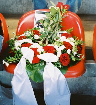 Ein Platz auf der Tribuna ist leer und wird nun von der Trauer aller, die Bernd gekannt haben gefüllt.
